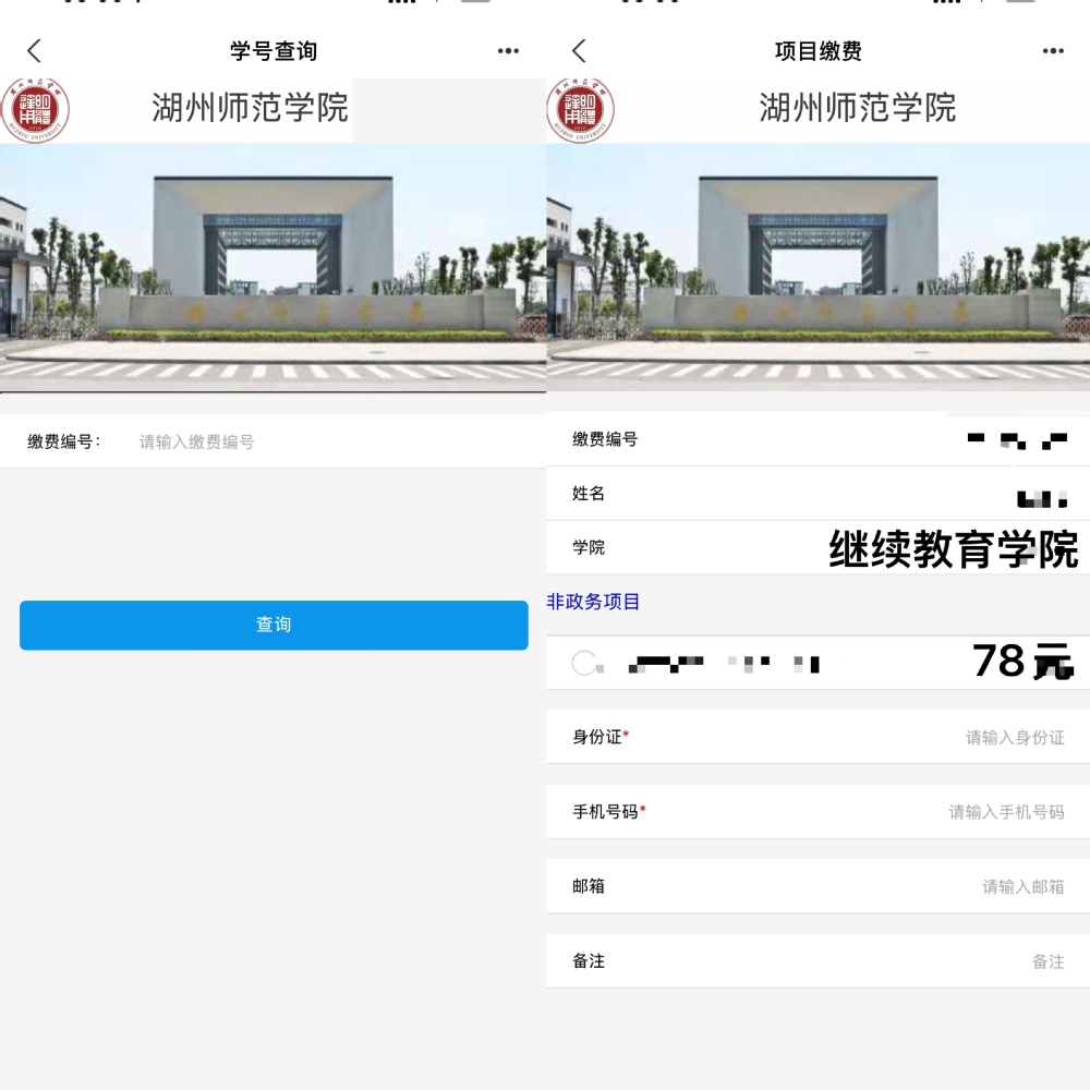 ②报名学生使用手机支付宝扫描二维码查询缴费,缴费编号为学号,点击查询,选择项目“普通话面授辅导及水平测试(继续教育学院)”,金额核对无误后,填入手机号,点击支付进行付费。