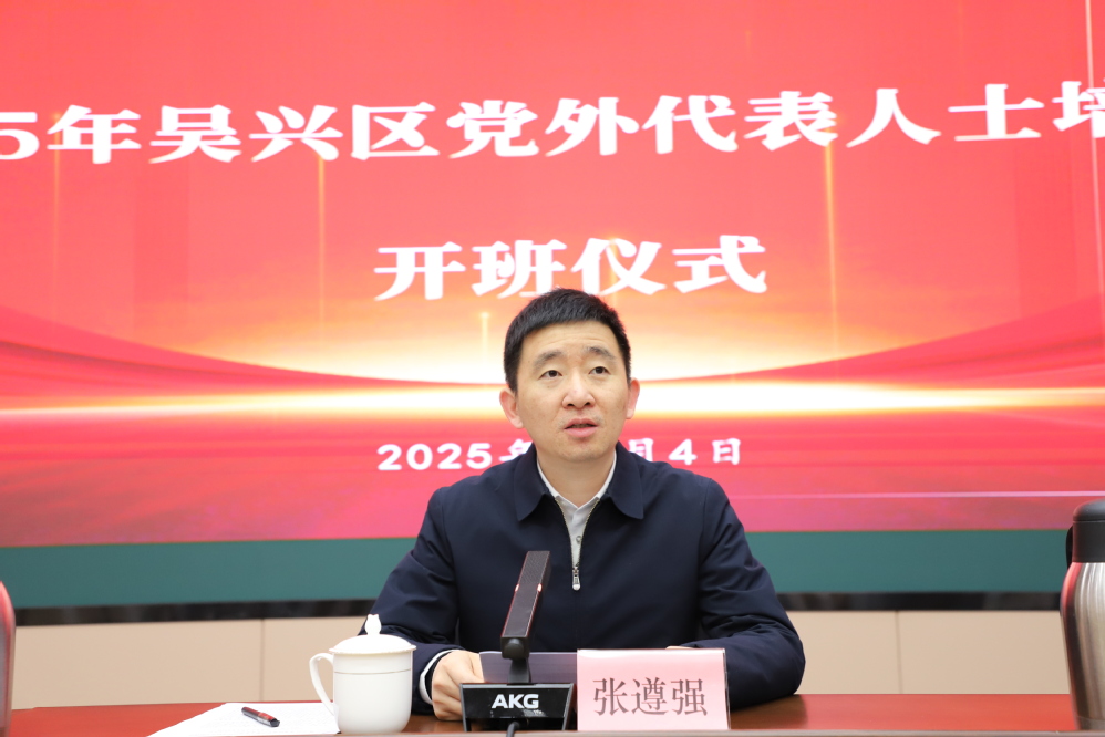 12 月 4 日上午的开班仪式由区委副部长、区工商联党组成员、秘书长仲俊主持。区委常委、统战部部长张遵强作动员讲话,强调培训是贯彻习近平总书记关于新时代统战工作重要思想、强化党外代表人士队伍建设、助力吴兴赶超发展的关键举措,并提出筑牢思想根基、深耕理论学习、汇聚统战合力三点要求,鼓励学员以学促干。
